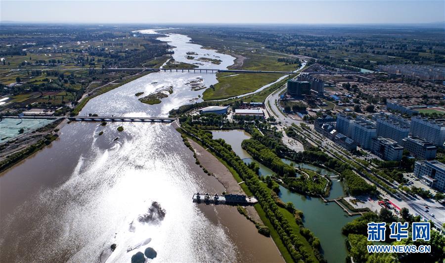 寧夏石嘴山市星海湖及周邊水系貫穿城市(2018年7月31日無人機拍攝)。 新華社記者 王鵬 攝
