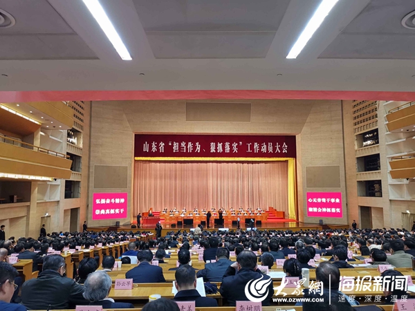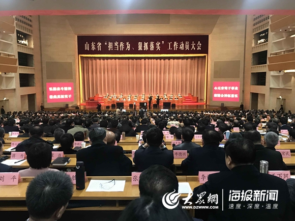 大眾網(wǎng)·海報新聞濟南2月11日訊(記者 李兆輝 梁雯 吳軍林 張海振 畢勝)春節(jié)后上班第一天,2月11日(正月初七)上午,山東省“擔當作為、狠抓落實”工作動員大會在濟南召開。山東省委書記劉家義發(fā)表講話,山東省委副書記、省長龔正主持會議。本次動員大會針對當前有些地方和部門存在抓落實不夠等問題,在山東全省部署開展“工作落實年”活動。大會主會場設(shè)在濟南山東會堂,約2000人參會,各市、縣(市、區(qū))設(shè)分會場,分會場采用視頻會議形式。