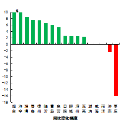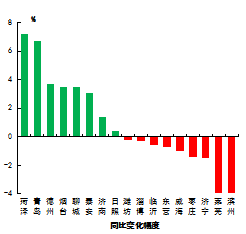 優(yōu)良率最好的是威海市,為87.1%,最差的是濱州市,為47.5%。8市同比增加,增加幅度最大的是菏澤市,為7.2個百分點;9市同比減少,減少幅度最大的是萊蕪和濱州市,為3.9個百分點。