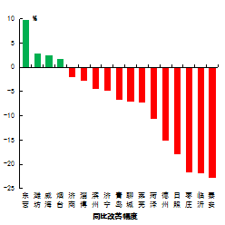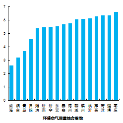 環(huán)境空氣質量綜合指數(shù)最好的城市是威海市,為2.62;最差的城市是棗莊市,為6.63。6市同比下降,下降幅度最大的城市是東營和煙臺市,為7.5%;11市同比上升,上升幅度最大的城市是棗莊市,上升幅度為16.7%。