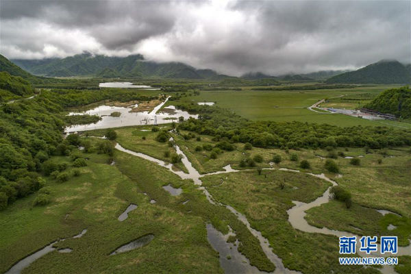 5月18日無人機(jī)拍攝的湖北神農(nóng)架大九湖高山濕地風(fēng)光。 新華社記者 杜華舉 攝
