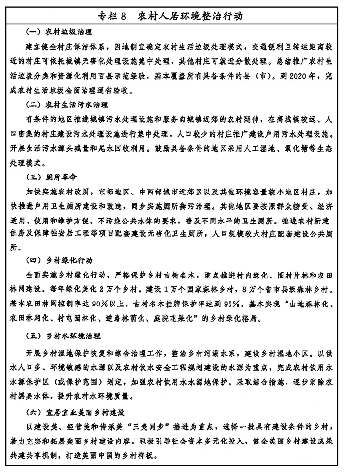 以建設(shè)美麗宜居村莊為導(dǎo)向,以農(nóng)村垃圾、污水治理和村容村貌提升為主攻方向,開展農(nóng)村人居環(huán)境整治行動,全面提升農(nóng)村人居環(huán)境質(zhì)量。