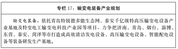 2.輸變電裝備。以山東電工電氣、泰開集團、特變電工、山東達馳等企業(yè)為主體,抓住國家鼓勵發(fā)展超高壓、特高壓、智能電網(wǎng)和煤改電等重大機遇,加快特高壓及超高壓輸變電設(shè)備、智能變電站成套裝備、智能配電網(wǎng)成套設(shè)備、用戶端智能化成套裝備和能源互聯(lián)網(wǎng)核心裝備等相關(guān)產(chǎn)業(yè)發(fā)展,建設(shè)全國高端智能輸變電裝備生產(chǎn)基地。進一步支持中小型企業(yè)技術(shù)創(chuàng)新,在強弱電控制設(shè)備、自動控制裝置等低壓電器設(shè)備領(lǐng)域取得技術(shù)突破,加大在線檢測、智能分析等技術(shù)在設(shè)備制造中的應(yīng)用。引進一批行業(yè)領(lǐng)先的智能電網(wǎng)企業(yè),深化與本省企業(yè)合作,在數(shù)字化變電站、智能配電網(wǎng)設(shè)備、電網(wǎng)智能調(diào)控等智能輸變電領(lǐng)域?qū)崿F(xiàn)技術(shù)創(chuàng)新,提升我省電力裝備企業(yè)的整體競爭力。