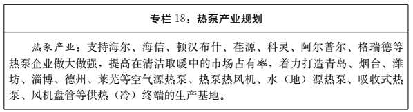 3.熱泵產(chǎn)業(yè)。穩(wěn)步發(fā)展淺層土壤源、海水源熱泵,大力發(fā)展低溫空氣源熱泵、熱泵熱風機,積極發(fā)展污水源熱泵、吸收式熱泵,進一步提升熱泵產(chǎn)業(yè)層次和規(guī)模,形成從主機制造、零部件制造、關(guān)鍵設(shè)備配套、技術(shù)服務(wù)等完整產(chǎn)業(yè)鏈,打造青島、煙臺、濰坊、淄博、德州、萊蕪等熱泵產(chǎn)業(yè)集群,進一步鞏固我省在全國熱泵強省產(chǎn)業(yè)地位。以“中國制造2025”“互聯(lián)網(wǎng)+工業(yè)”為依托,借鑒青島海爾等清潔能源智聯(lián)工廠建設(shè)新模式,積極推動“互聯(lián)網(wǎng)+智慧工廠”“互聯(lián)網(wǎng)+智能制造”建設(shè),促進熱泵產(chǎn)業(yè)智慧化生產(chǎn)。