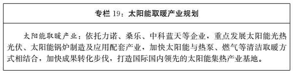 4.太陽能集熱產(chǎn)業(yè)。依托濟南、德州、臨沂、泰安、濰坊、棗莊等市太陽能產(chǎn)業(yè)優(yōu)勢,發(fā)揮力諾、桑樂等企業(yè)的引領(lǐng)作用,提升太陽能光熱利用水平和產(chǎn)品的知名度。開展“太陽能+”清潔取暖技術(shù)系統(tǒng)研究與工程推廣應(yīng)用,積極促進太陽能與其他能源融合發(fā)展,提升產(chǎn)業(yè)智慧化水平和轉(zhuǎn)換效率,進一步鞏固和提升我省太陽能集熱產(chǎn)業(yè)在全國的龍頭地位。