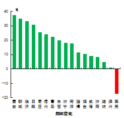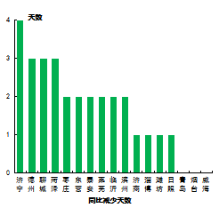 7市均未出現(xiàn)重污染天氣。14市同比減少,減少幅度最大的是濟(jì)寧市,為4天;青島等3市同比持平。