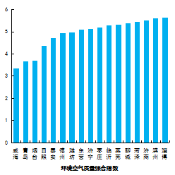 環(huán)境空氣質(zhì)量綜合指數(shù)最好的是威海市,為3.35,最差的是淄博市,為5.63。16市同比下降,下降幅度最大的是泰安市,為18.4%;威海市同比上升,上升幅度為2.8%。