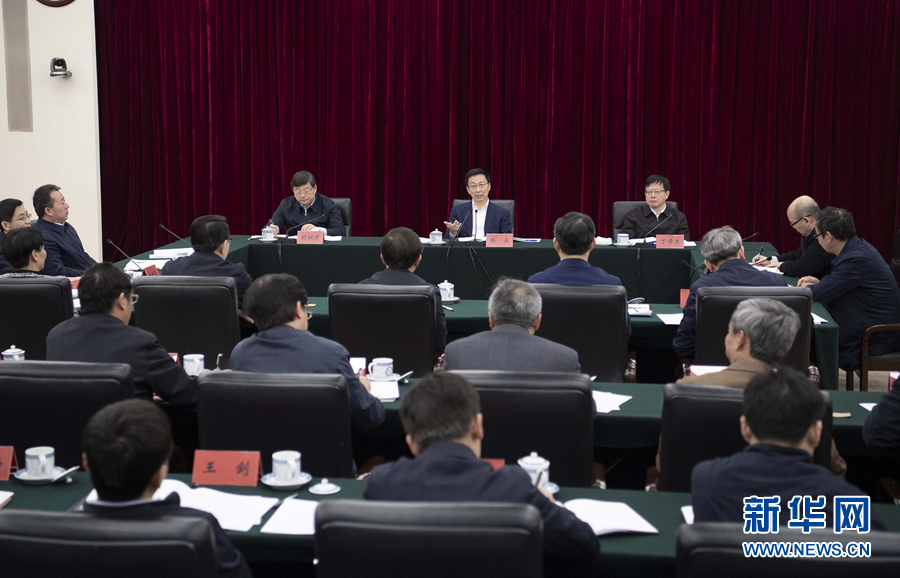 3月22日,中共中央政治局常委、國(guó)務(wù)院副總理韓正到生態(tài)環(huán)境部調(diào)研并主持召開座談會(huì)。 新華社記者 李濤 攝